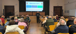 La tercera y última sesión, impartida por el Sargento D. Julián Susín Molina, relativa al conocimiento y prevención de los delitos más habituales que sufren las personas de edad en su entorno habitual.